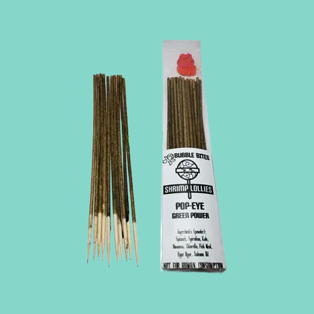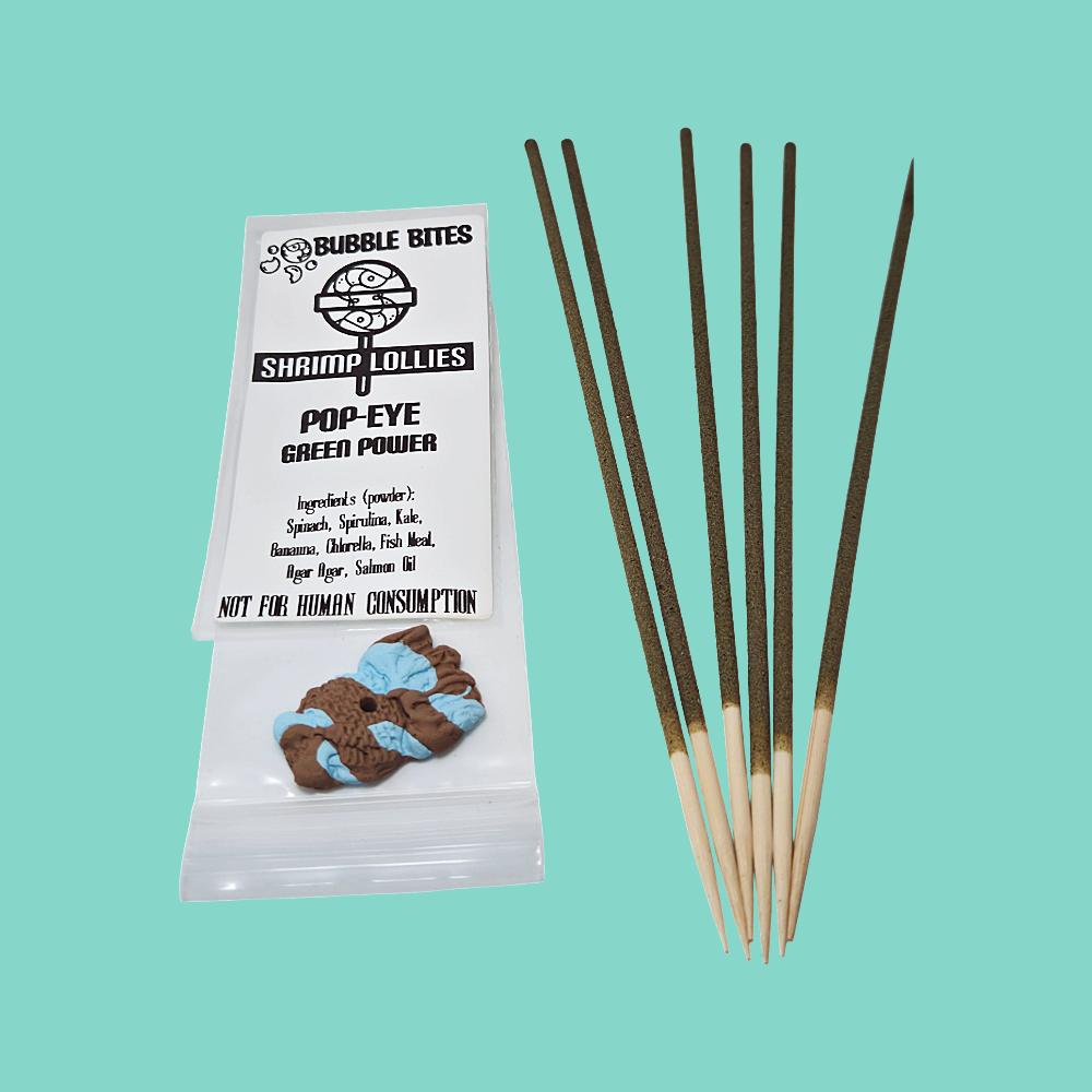 Pop Eye Shrimp Lollies are packed with leafy greens, a touch of banana for sweetness, and algae-rich powders to support shrimp, snails, and hungry otocinclus catfish. Great for keeping your tank clean and your grazers fed — without food falling into the substrate.